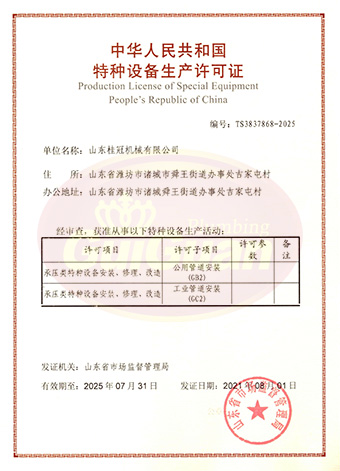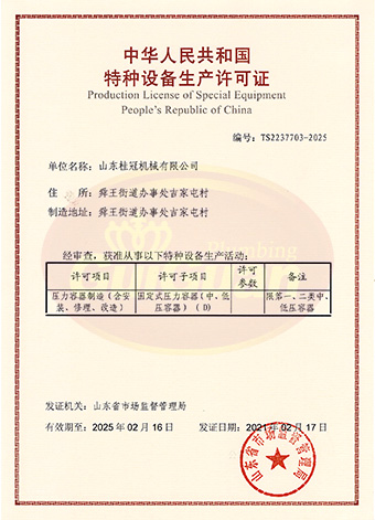 山東桂冠機(jī)械有限公司成立于2008年,注冊(cè)資金1600萬(wàn)元,現(xiàn)有員工200多人,中高級(jí)技術(shù)管理人員45人,占地面積27000多平方米,生產(chǎn)車間面積12000多平方米。公司具備壓力容器產(chǎn)品的設(shè)計(jì)、制造(證書(shū)編號(hào)為:TS2237703-2025)、壓力管道安裝(證書(shū)編號(hào)為TS3837607-2025)全套壓力容器資質(zhì);通過(guò)國(guó)家ISO9001質(zhì)量管理體系認(rèn)證、美國(guó)ASME認(rèn)證、歐盟CE認(rèn)證;擁有建筑安裝機(jī)電工程專業(yè)承包叁級(jí)資質(zhì)、建筑工程施工總承包叁級(jí)資質(zhì)及對(duì)外貿(mào)易經(jīng)營(yíng)出口權(quán)…